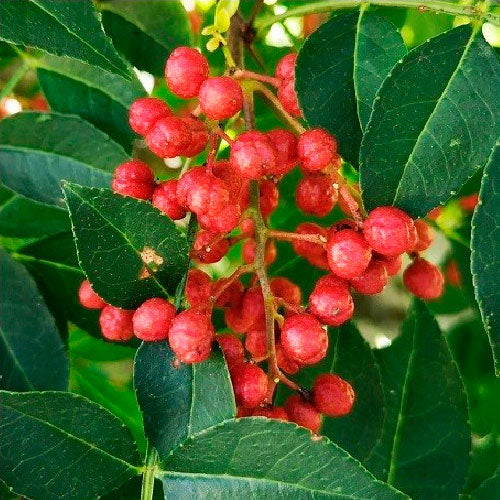 Zanthoxylum piperitum, le poivre sanshō, parfois malnommé ‘’poivre de sichuan’’, est un arbuste originaire du Japon, de la famille des agrumes. C’est un arbre caduc au port buissonnant qui porte des épines très pointues. Il s’accomode de sols et de climats variés. Ses baies roses sont utilisés en épice : la coque qui entoure la graine a une saveur typique qui rappelle le poivre, quoiqu’en plus picotant, amenant une légère anesthésie des papilles avant de conclure avec des notes citronnées en fin de bouche. Traditionnellement utilisée comme conservateur, la baie de sanshō, est aujourd’hui très employée dans la cuisine japonaise, ainsi que ses feuilles. Un arbre très intéressant en haie libre.
